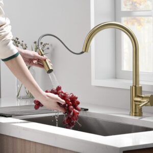 Satin Gold Single Hole Installation 7-1/2”High and 10”Long 1350 Swivel Spout 2 Modes (stream & spray) Pull-down Sprayer Quick Connect 60”