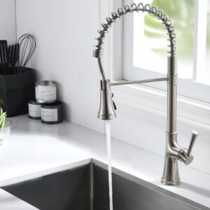 Brushed Nickel Single Hole Installation 17”High and 9”Long 1350 Swivel Spout 2 Modes (stream & spray) Pull-down Sprayer Quick Connect 60”